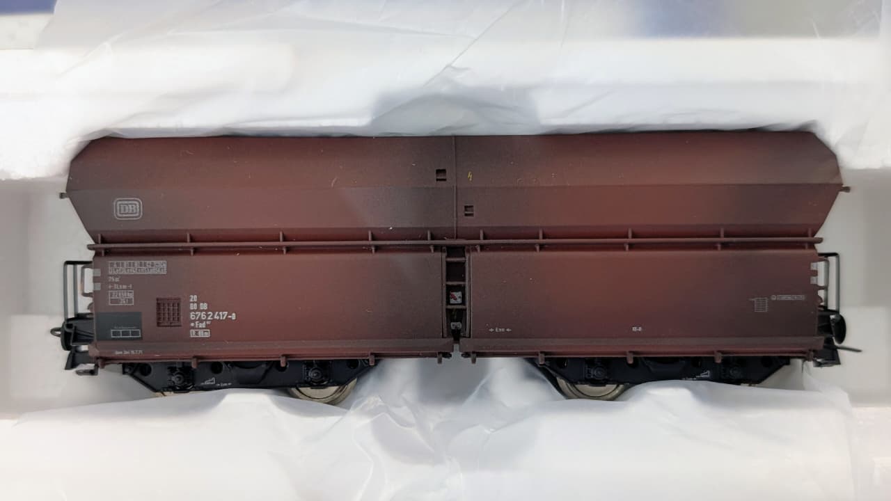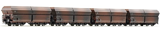 • Four 4-axle self-unloading wagons type Fal 167 of the Deutsche Bundesbahn (DB).